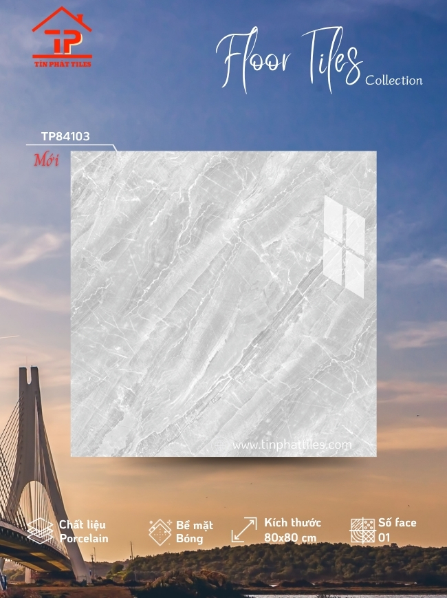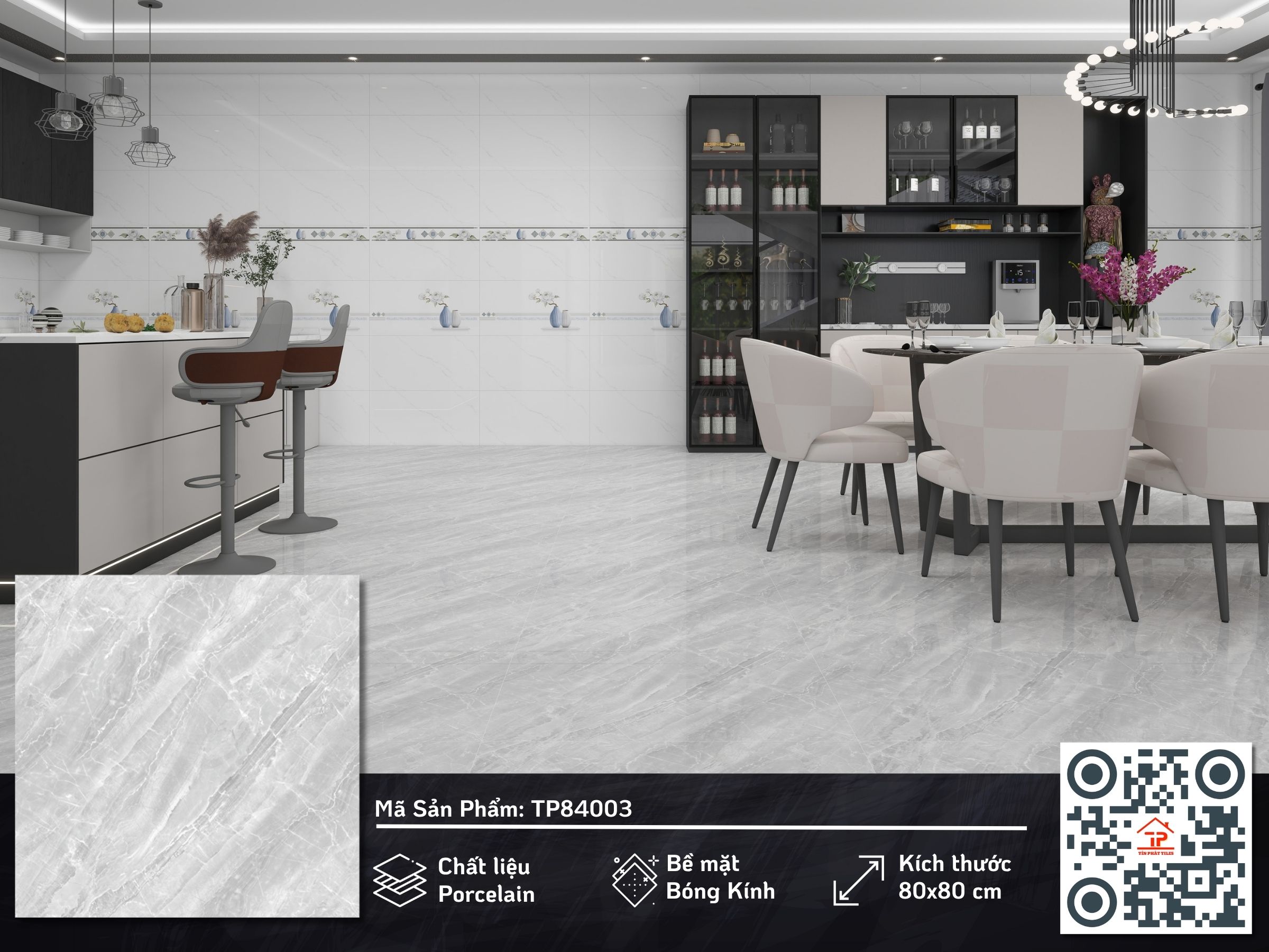 Khi diện tích không còn là giới hạn, gạch 80x80cm bước vào như một “nhân vật chính” đầy khí chất. Kích thước lớn tạo nên những mảng sàn liền mạch, giảm thiểu đường ron, mang lại cảm giác rộng rãi và thoáng đãng ngay từ ánh nhìn đầu tiên. Bề mặt bóng kính phản chiếu ánh sáng tinh tế, khiến không gian như được “thắp sáng” từ bên trong, vừa sang trọng vừa hiện đại. Những đường vân đá mềm mại trải dài, tạo hiệu ứng tự nhiên mà vẫn giữ được nét chỉn chu, cao cấp.