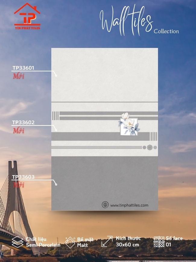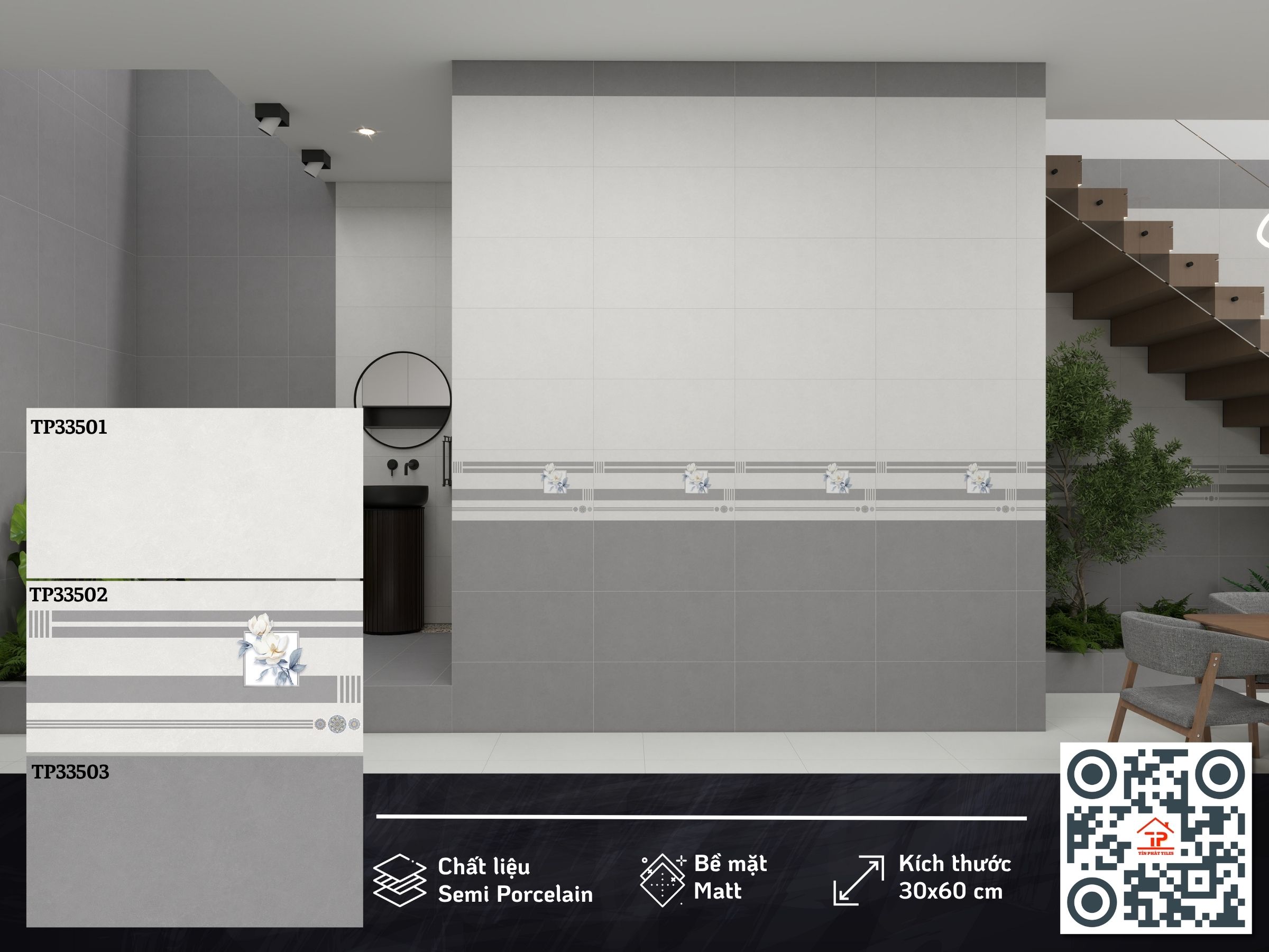 Không cần ánh bóng để gây chú ý, bộ sưu tập gạch ốp tường 30x60cm chinh phục không gian bằng vẻ đẹp trầm tĩnh và đầy chiều sâu. Bề mặt mờ mịn (matt) mang lại cảm giác dịu mắt, hạn chế phản xạ ánh sáng, giúp tổng thể trở nên hài hòa và dễ chịu hơn. Kết hợp cùng xương bán sứ (semi porcelain) cứng cáp, từng viên gạch như một lớp nền vững chắc, nâng đỡ phong cách sống hiện đại theo cách nhẹ nhàng mà tinh tế.