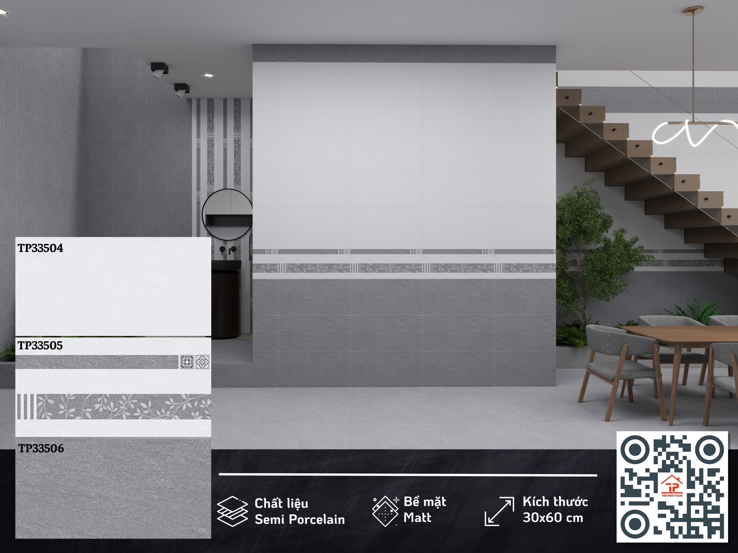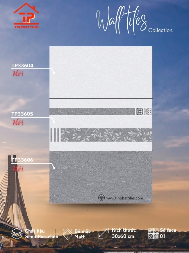 Không cần ánh bóng để gây chú ý, bộ sưu tập gạch ốp tường 30x60cm chinh phục không gian bằng vẻ đẹp trầm tĩnh và đầy chiều sâu. Bề mặt mờ mịn (matt) mang lại cảm giác dịu mắt, hạn chế phản xạ ánh sáng, giúp tổng thể trở nên hài hòa và dễ chịu hơn. Kết hợp cùng xương bán sứ (semi porcelain) cứng cáp, từng viên gạch như một lớp nền vững chắc, nâng đỡ phong cách sống hiện đại theo cách nhẹ nhàng mà tinh tế.
