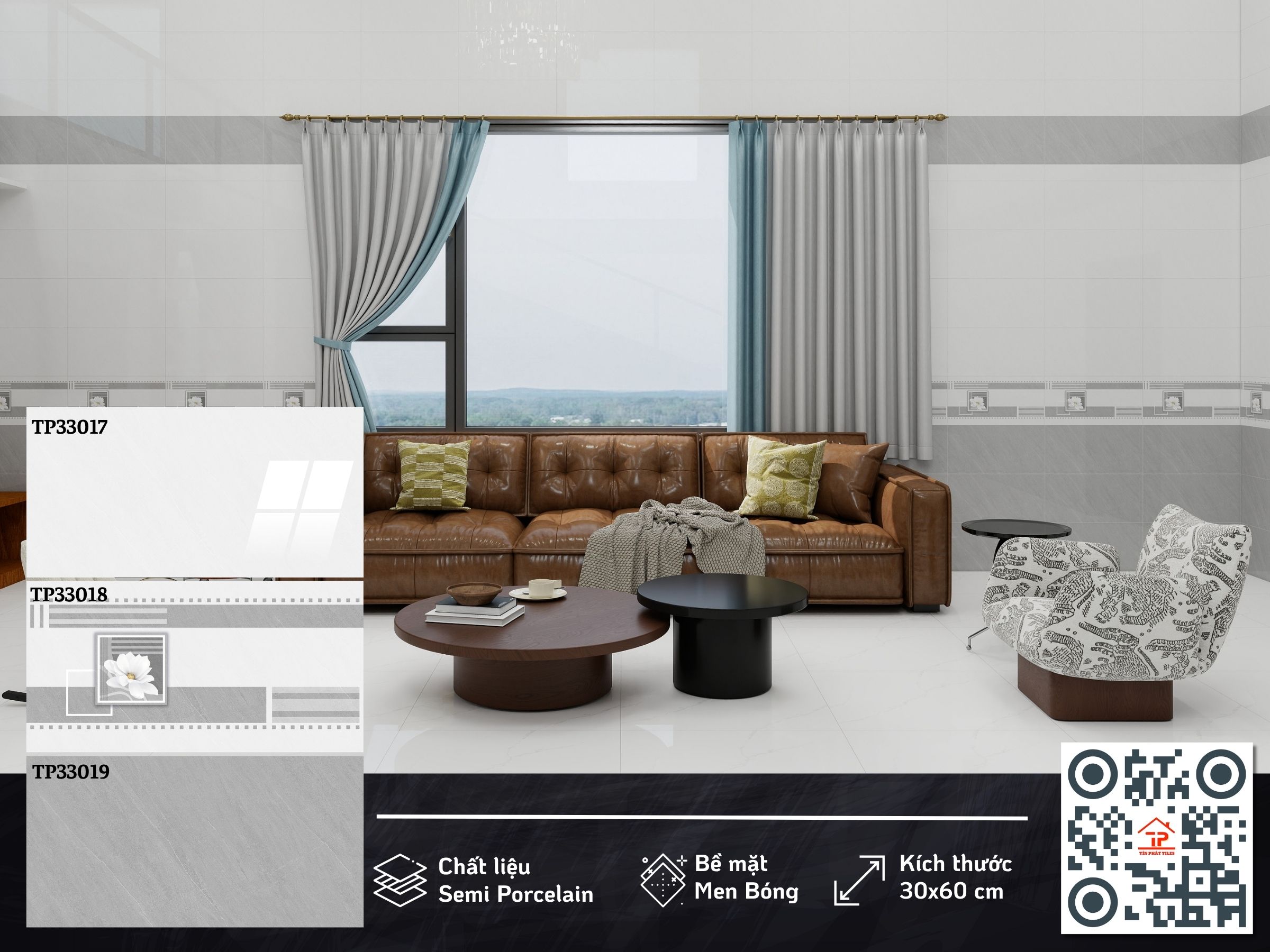Không cần quá cầu kỳ, bộ sưu tập gạch ốp tường 30x60cm vẫn đủ sức “bắt sáng” mọi không gian theo cách rất riêng. Với bề mặt phủ men bóng, từng viên gạch như một tấm gương nhẹ nhàng phản chiếu ánh sáng, giúp không gian trở nên rộng rãi và sạch sẽ hơn. Kết hợp cùng xương bán sứ (semi porcelain) cứng cáp, sản phẩm không chỉ đẹp ở bề ngoài mà còn bền bỉ theo thời gian, giữ trọn vẻ tinh tươm cho từng mảng tường.