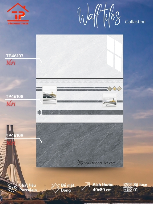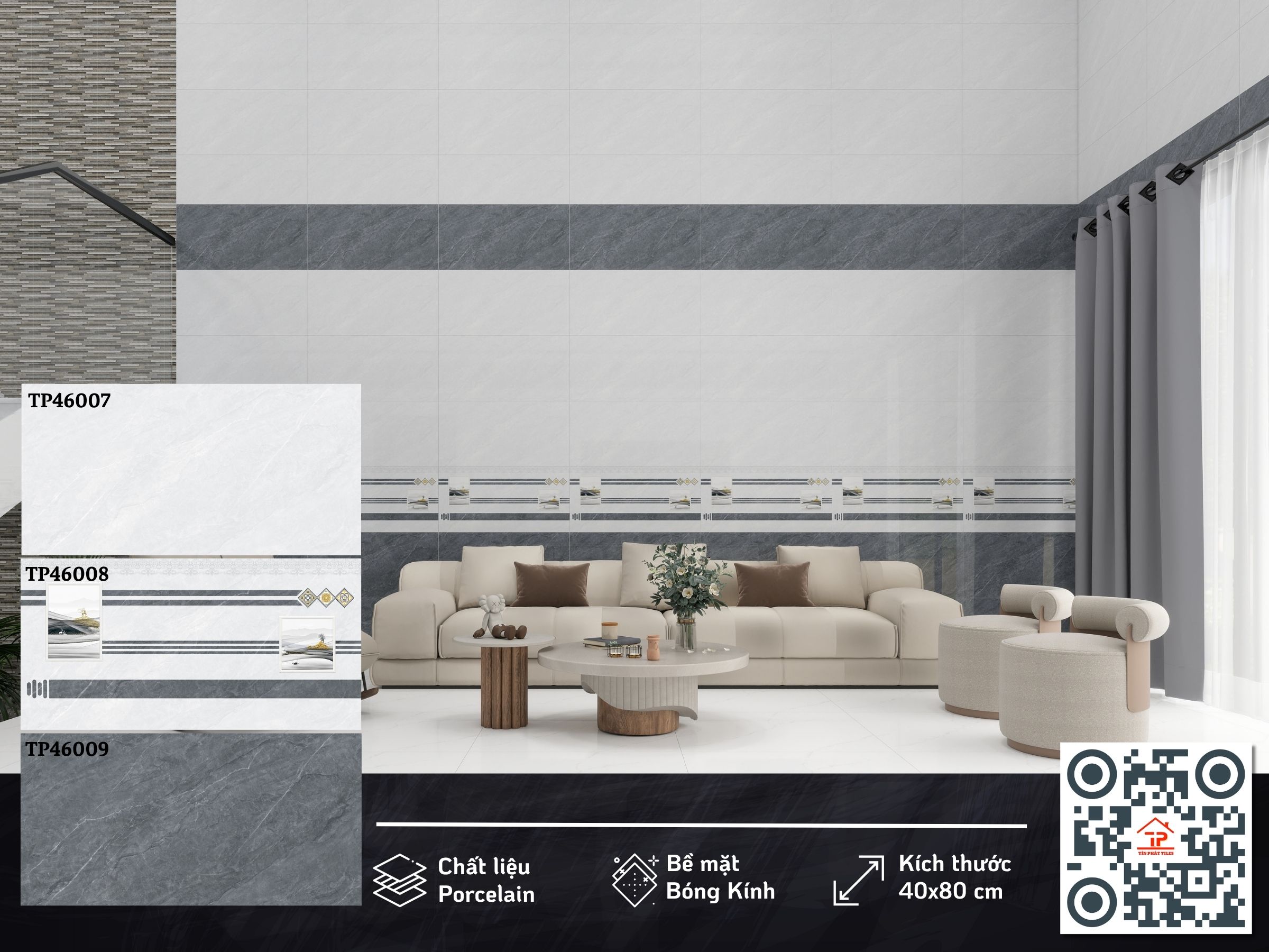 Mang dáng vẻ thanh thoát với kích thước 40x80cm, bộ sưu tập đá bóng kính tạo nên những mảng tường liền mạch và đầy ấn tượng. Bề mặt bóng kính như một lớp “ánh gương” sang trọng, bắt sáng tốt, giúp không gian trở nên rộng rãi và lung linh hơn theo từng góc nhìn. Hiệu ứng vân đá được tái hiện tinh tế, vừa hiện đại vừa gần gũi, đủ để nâng tầm mọi không gian mà không cần quá nhiều chi tiết.