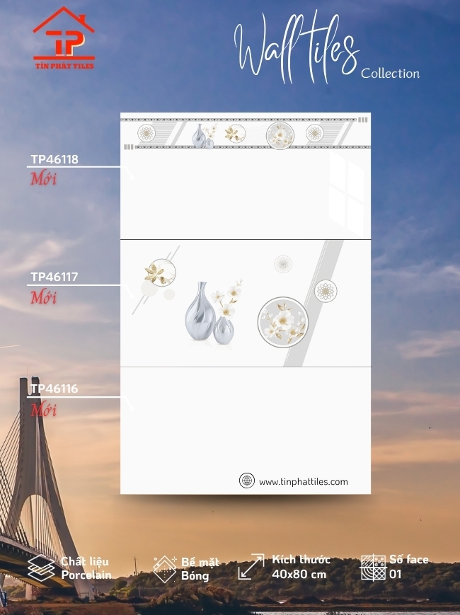 Mang dáng vẻ thanh thoát với kích thước 40x80cm, bộ sưu tập đá bóng kính tạo nên những mảng tường liền mạch và đầy ấn tượng. Bề mặt bóng kính như một lớp “ánh gương” sang trọng, bắt sáng tốt, giúp không gian trở nên rộng rãi và lung linh hơn theo từng góc nhìn. Hiệu ứng vân đá được tái hiện tinh tế, vừa hiện đại vừa gần gũi, đủ để nâng tầm mọi không gian mà không cần quá nhiều chi tiết.