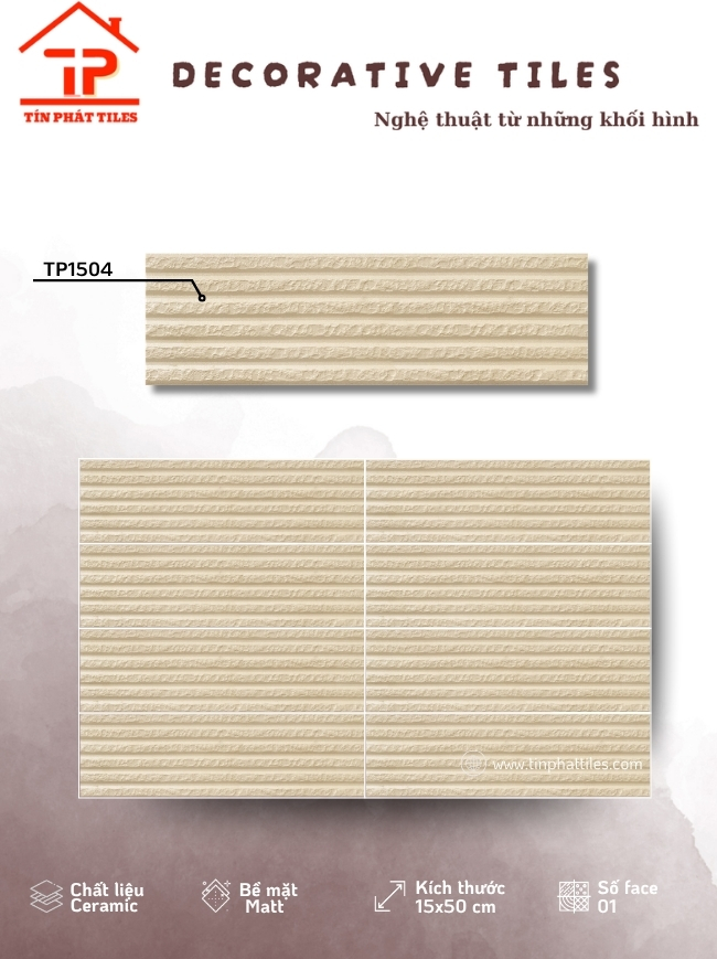 Mang trong mình tỷ lệ cân đối và dáng gạch thanh thoát, bộ sưu tập 15x50cm mở ra một “ngôn ngữ thiết kế” rất riêng cho không gian sống. Không quá nhỏ như gạch trang trí truyền thống, cũng không quá lớn để gây áp lực thị giác, kích thước này tạo nên sự hài hòa vừa vặn, giúp bức tường trở nên gọn gàng mà vẫn đầy điểm nhấn. Kết hợp cùng chất liệu ceramic bền chắc và bề mặt khuôn/matt tinh tế, từng viên gạch như góp phần dệt nên một tổng thể nhẹ nhàng, sang trọng và có chiều sâu.